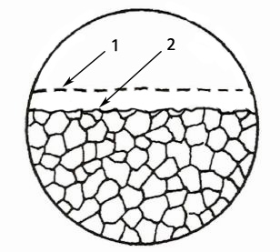 Obr. 5 Rovnoměrná koroze, 1 – původní povrch, 2 – povrch po napadení